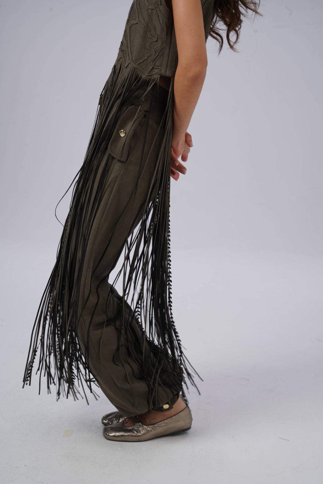 The bottom of this pair of pants fastens with a button.